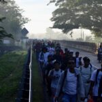 Amílcar García Tras haber caminado más de 48 horas sobre la carretera Costera, la caravana migrante que partió de Tapachula