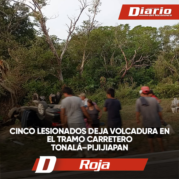 Darinel González Una aparatosa volcadura registrada la mañana de este miércoles en el tramo carretero Tonalá–Pijijiapan, a la altura de Los Patos, dejó como saldo cinco personas lesionadas, lo que