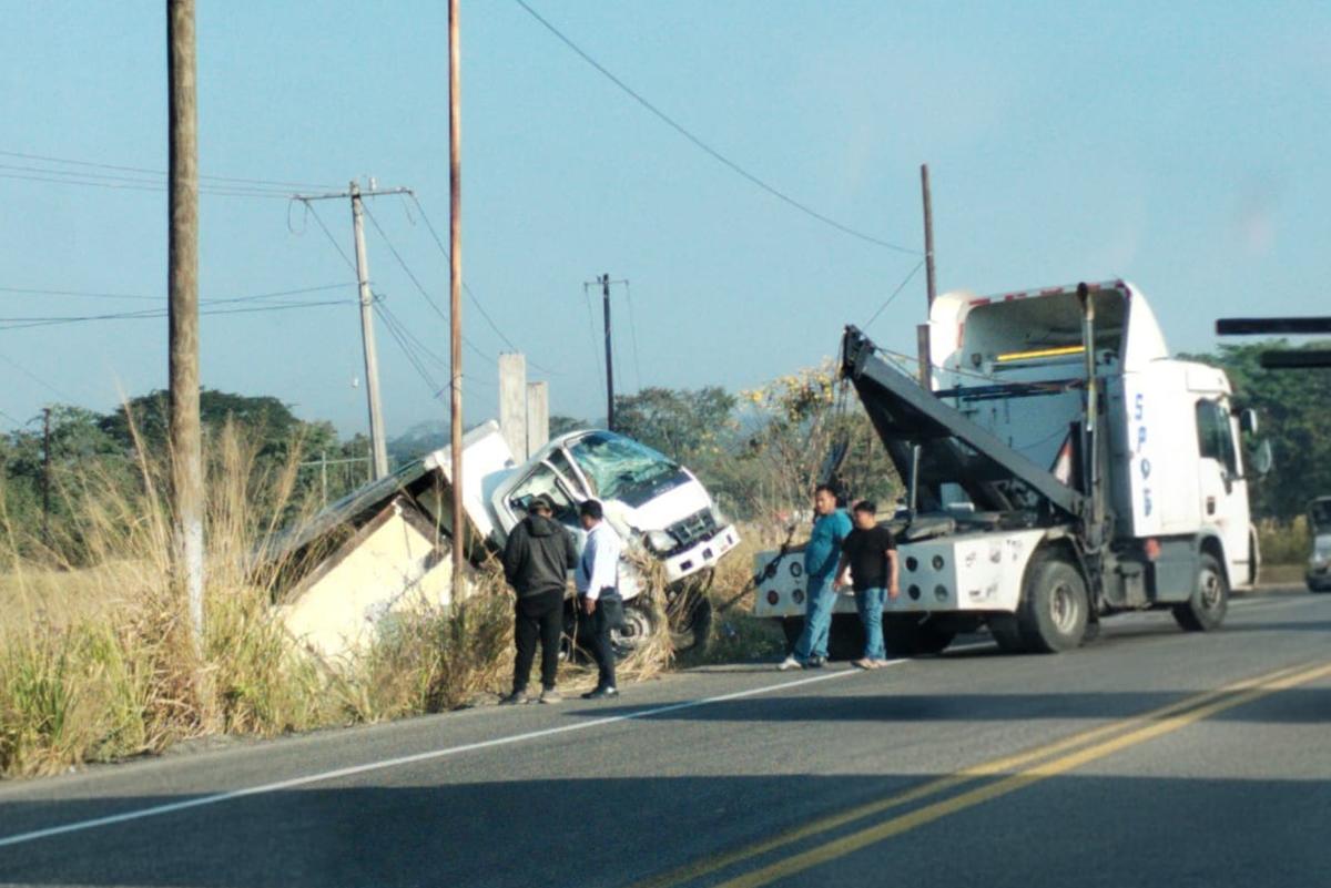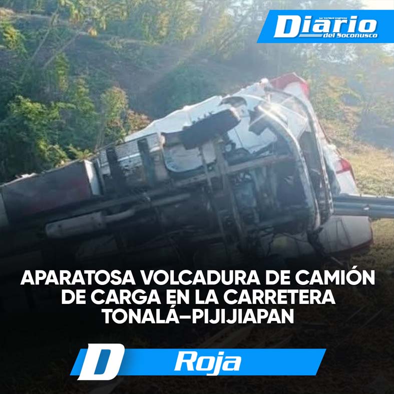 Aparatosa volcadura de camión de carga en la carretera Tonalá–Pijijiapan