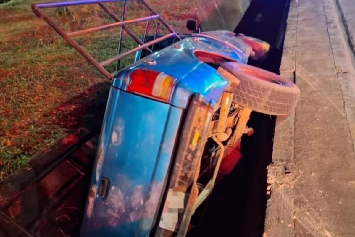 Darinel González La mañana de este miércoles un vehículo Isuzu con caja seca, de color blanco, terminó fuera de la carpeta asfáltica a un costado de la carretera del Libramiento