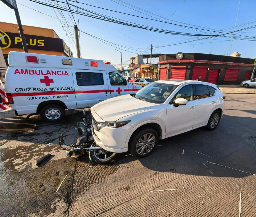 Darinel González El conductor de una motocicleta Italika tipo chopper, de color negro, resultó lesionado luego de ser embestido por una camioneta Mazda CX-5, color blanco, en el cruce de