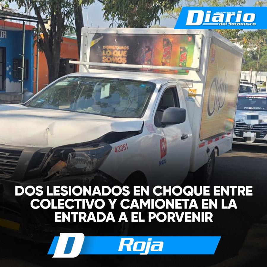 Dos lesionados en choque entre colectivo y camioneta en la entrada a El Porvenir