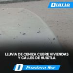Lluvia de ceniza cubre viviendas y calles de Huixtla