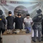 M de R Fuerzas policiales detuvieron a tres aún etos por los delitos de violación a la Ley Federal de Armas de Fuego y Explosivos y contra la salud en