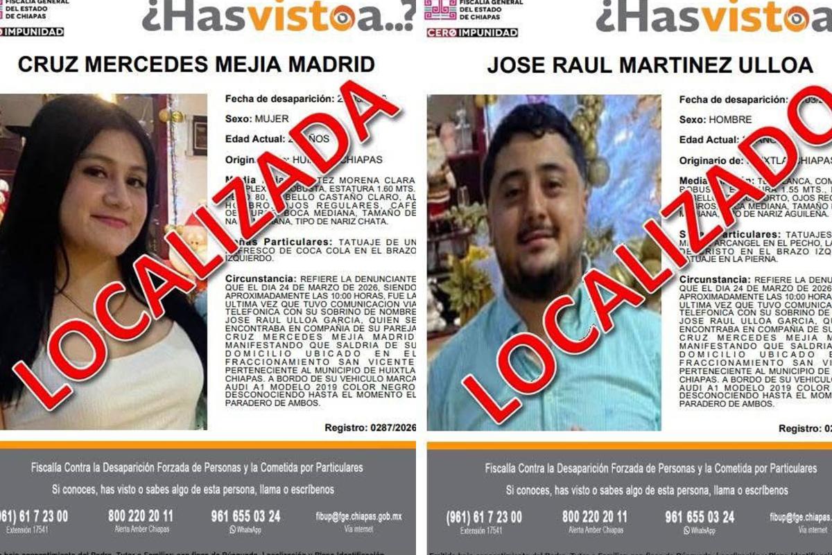 •Autoridades señalaron que fueron encontrados tras más de 140 horas en calidad de ausentes M de R Cruz Mercedes Mejía Madrid y José Raúl Martinez Ulloa fueron localizados tras más