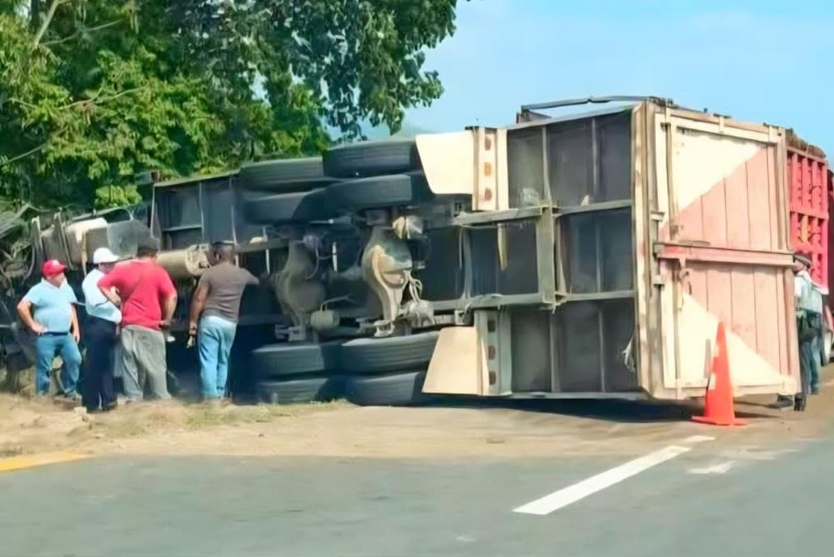 Darinel González Una aparatosa volcadura se registró sobre la carretera que conecta Escuintla con Villa Comaltitlán, a la altura de la conocida zona de la aceitera, donde un camión tipo