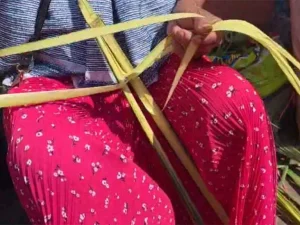 Con la llegada de la Semana Santa, comerciantes como Lucía Vázquez instalan sus puestos de palmas a las afueras de