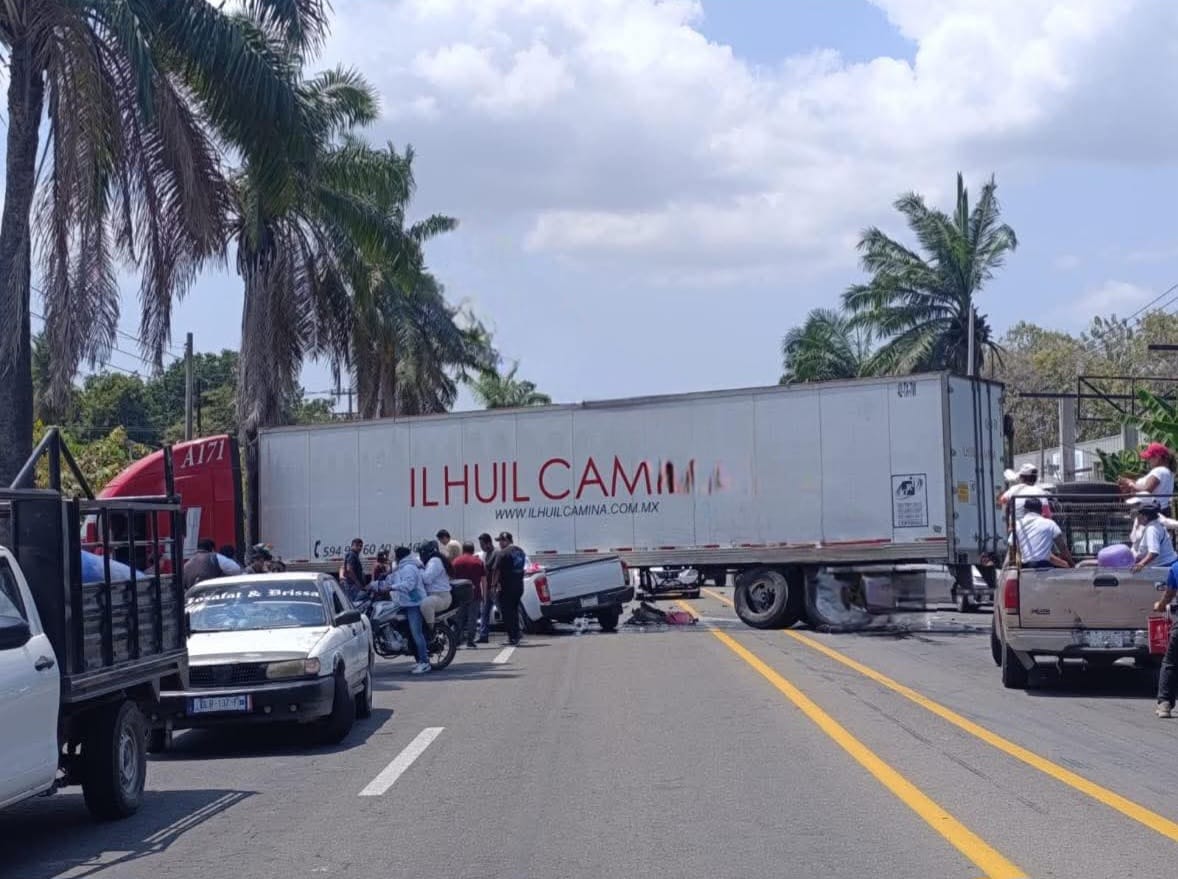 *Conductor de un tráiler intentó realizar una vuelta indebida, provocando que una camioneta se impactara contra la caja de la pesada unidad. M de R Un aparatoso accidente registrado la