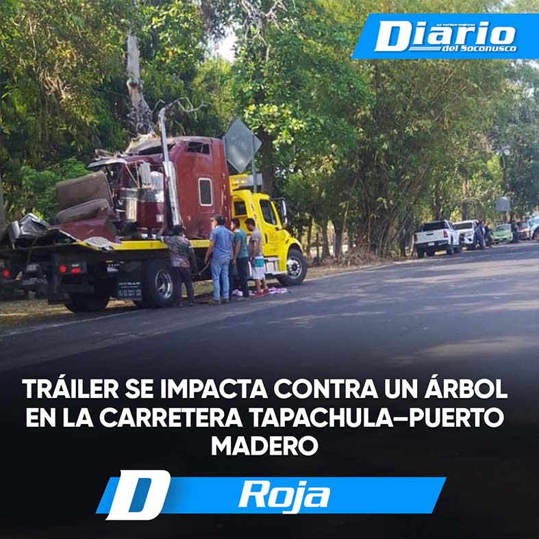 Tráiler se impacta contra un árbol en la carretera Tapachula – Puerto Madero