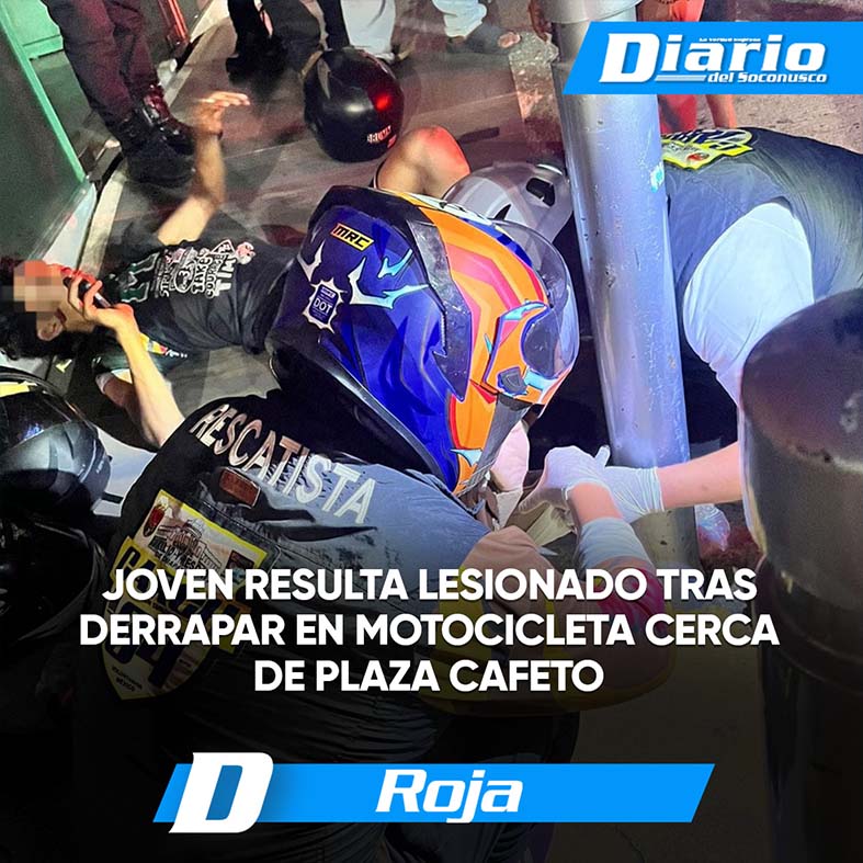 Joven resulta lesionado tras derrapar en motocicleta cerca de Plaza Cafeto