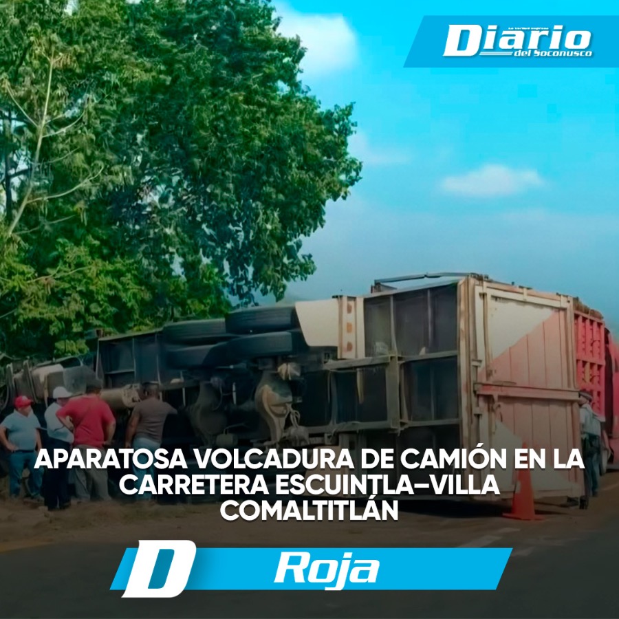 Aparatosa volcadura de camión en la carretera Escuintla–Villa Comaltitlán