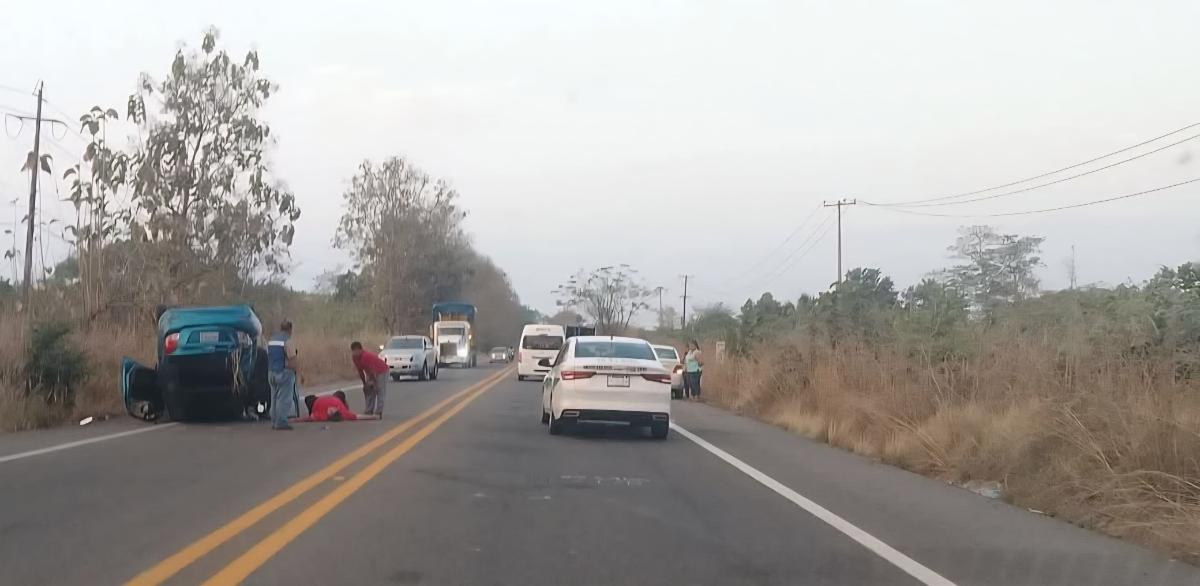 Darinel González Dos personas resultaron lesionadas al volcar el vehículo en que viajaban sobre la carretera Tapachula–Puerto Madero, a la altura de la parada conocida como Cuatro Milpas.El accidente se