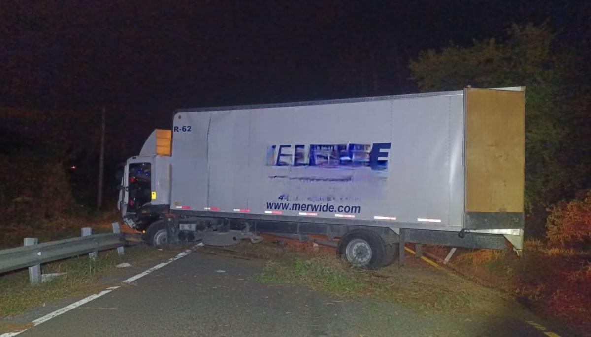 Darinel González Durante la madrugada de este miércoles se registró un aparatoso accidente sobre la carretera federal Tonalá–Pijijiapan, donde un camión de transporte de carga pesada terminó fuera de la