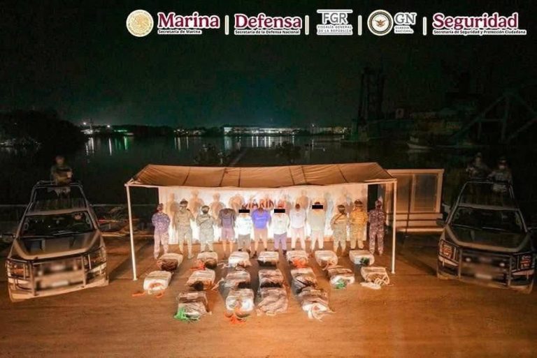 M de R La Secretaría de Marina (Semar), en funciones de Guardia Costera, ha decomisado casi una tonelada de cocaína tras interceptar una embarcación menor en altamar, frente a las