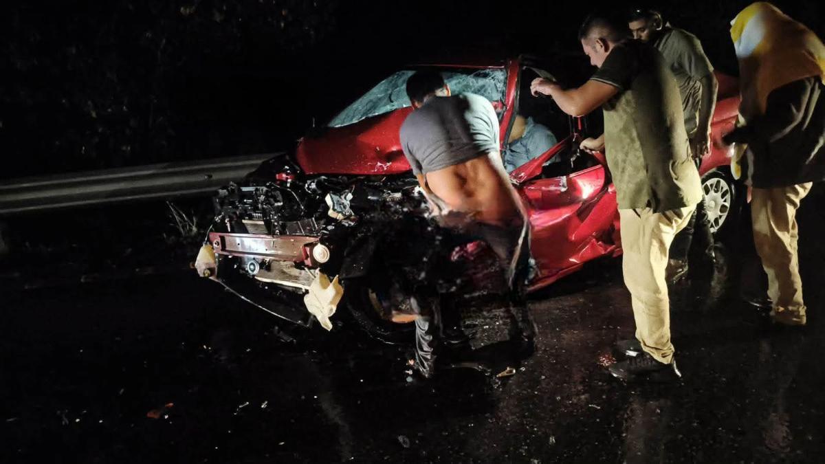 Darinel González Un conductor resultó lesionado luego de que el automóvil que manejaba, de color guinda, se impactara contra un objeto sobre la carretera Mapastepec–Escuintla, a la altura de la