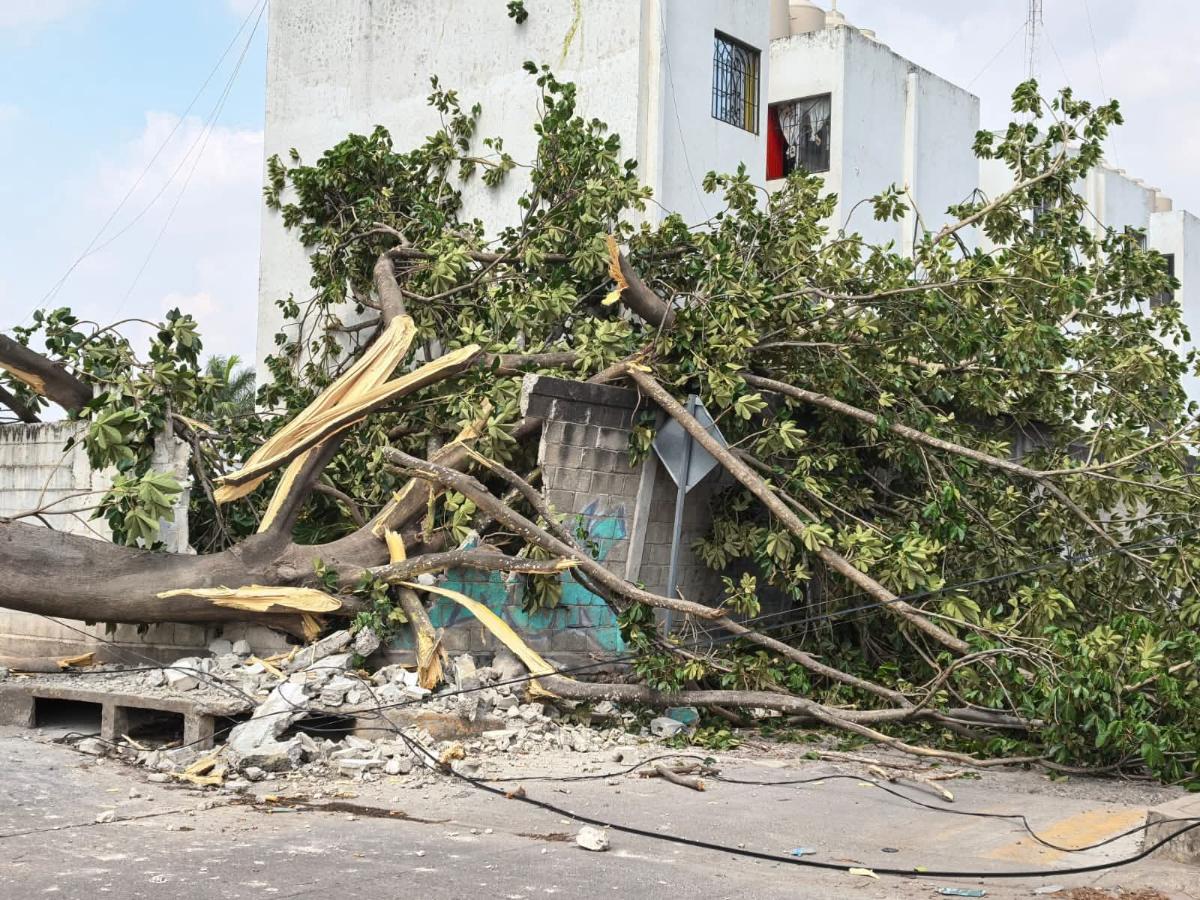 Darinel González La caída de una enorme rama de un árbol de castaño provocó el colapso de una barda y el bloqueo total de la circulación sobre la 11ª avenida