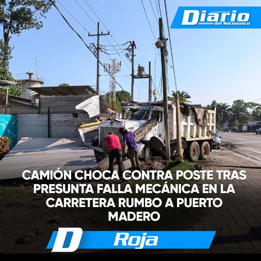 Darinel González Un camión Kenworth tipo volteo de color blanco protagonizó un incidente sobre la carretera Tapachula–Puerto Madero, luego de que presuntamente sufriera una falla mecánica que provocó que el