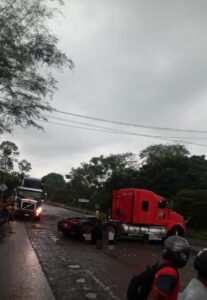 Choque entre camiones en el tramo Motozintla–Huixtla deja solo daños materiales