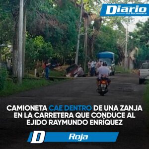 Darinel González La mañana de este martes, una camioneta Chevrolet Trax de color guinda terminó dentro de un zanjón ubicado a un costado de la carretera que conduce al ejido
