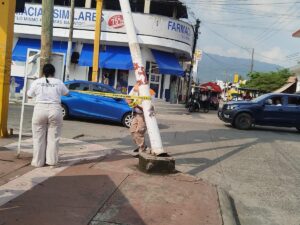 *Poste de cámaras de videovigilancia están en vías de desplomarse, por lo que Protección Civil se encargó de acordonar el área.