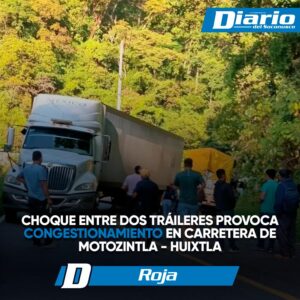 Darinel González Un aparatoso accidente se registró la tarde de este martes sobre la carretera federal Motozintla–Huixtla, a la altura del ejido Campeche, donde dos tráileres, uno perteneciente a la