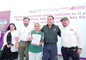El gobernador Eduardo Ramírez Aguilar, junto al director general de los Servicios Públicos de Salud del IMSS-Bienestar, Alejandro Svarch Pérez, encabezó la bienvenida al personal médico reclutado en el programa