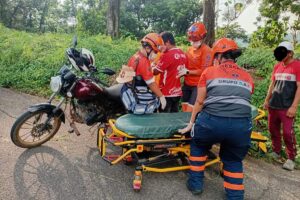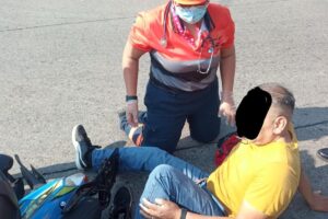 Motociclista lesionado en tibia, peroné, manos, clavícula izquierda, maxilar superior, tabique nasal y, en la región frontal, así como temporal del lado izquierdo. Darinel González Un motociclista resultó lesionado luego