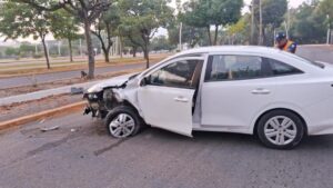 Un fuerte accidente en la calzada Andrés Serra Rojas deja un lesionado de gravedad y severos daños materiales