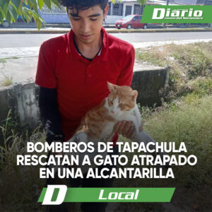 Darinel González Elementos del Heroico Cuerpo de Bomberos de Tapachula realizaron una exitosa labor de rescate al liberar a un gato que se encontraba atrapado en una alcantarilla, a un