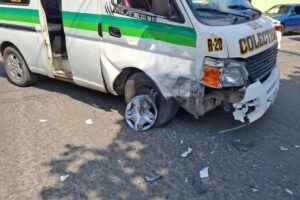 Darinel González Alrededor de las 13:00 horas de este martes se registró un accidente vehicular entre una camioneta Toyota Hilux de color azul y un colectivo de la ruta Pemex