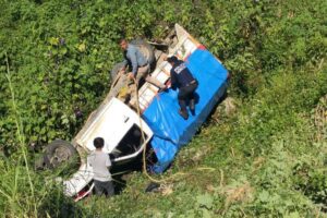 San Juan Cancuc.— Un aparatoso accidente en el tramo carretero que conduce a este municipio dejó a un hombre gravemente herido luego de que la camioneta que manejaba se precipitara