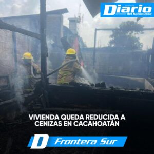 Darinel González / Corresponsal Diario del Soconusco Cacahoatán, Chiapas. Una vivienda quedó completamente reducida a cenizas la tarde de este lunes, luego de que un voraz incendio consumiera en su