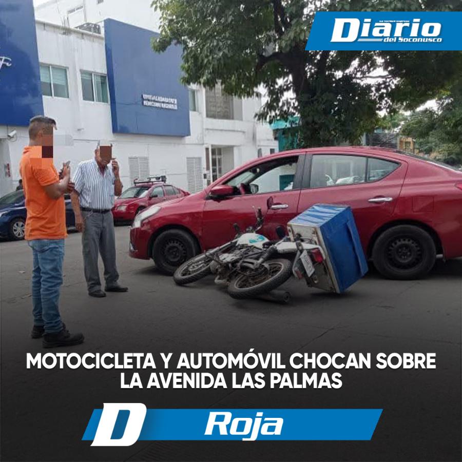 Darinel González Un accidente vehicular registrado la tarde de este lunes dejó como saldo daños materiales de consideración, luego del choque entre una motocicleta Honda 150 blanca y un automóvil