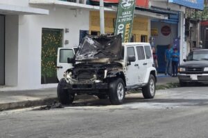 Darinel González Una intensa movilización policiaca y de cuerpos de emergencia se registró la mañana de este lunes luego de que una camioneta Jeep blanca se incendiara mientras permanecía estacionada