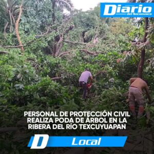 Darinel González Elementos de la Secretaría de Protección Civil Municipal llevaron a cabo este miércoles la poda de un frondoso árbol ubicado a la altura de la 17ª calle Oriente,