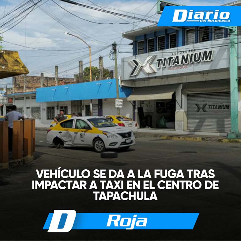 Vehículo se da a la fuga tras impactar a taxi en el centro de Tapachula