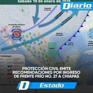 Protección Civil emite recomendaciones por ingreso de frente frío No. 27 a Chiapas