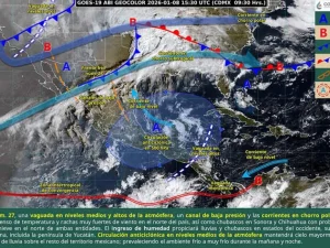 La aproximación y posterior desplazamiento del frente frío en el sureste mexicano, favorecerá nubosidad y potencial para lluvias en el estado de Chiapas hacia el fin de semana y el