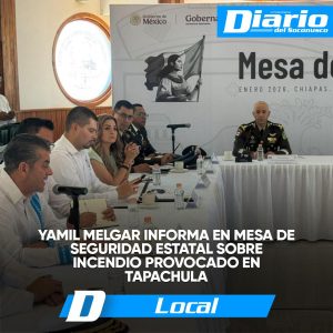 Tapachula, Chiapas; 16 de enero de 2026.-El presidente municipal de Tapachula, Yamil Melgar, informó en la Mesa de Paz y Seguridad estatal, encabezada por el gobernador Eduardo Ramírez, la problemática