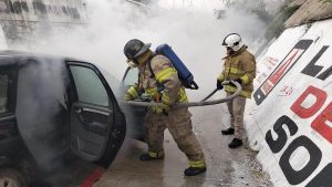Juan Hernández / Diario de Chiapas Tuxtla Gutiérrez, Chiapas.- La tarde de este martes se registró el incendio de un vehículo particular cuando circulaba sobre el Libramiento Norte, a la
