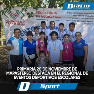Darinel González La Escuela Primaria 20 de Noviembre, del municipio de Mapastepec, tuvo una destacada participación en los Eventos Deportivos Escolares en su etapa regional, celebrados en el municipio de