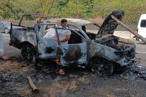 • Se incendia camioneta en la carretera Costera, a la altura de Huehuetán Amilcar García Una camioneta tipo Pick-Up terminó convertida en chatarra luego de incendiarse sobre la carretera Costera.Alrededor