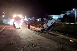 Darinel González Durante la madrugada de este martes se registró una aparatosa volcadura de una camioneta Mitsubishi, color blanco, sobre la 9a avenida Sur Par Vial, en el tramo comprendido