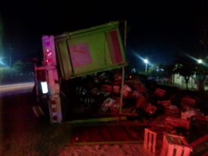 • Iba cargado con plátano y el peso pudo haber sido la causa que el chofer perdiera el control, en Frontera Hidalgo Darinel González Un camión tipo torton de color