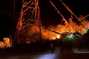 Amilcar García Un fuerte incendio se registró en la zona serrana de Tuzantán, tras averías en cables de alta tensión de la Comisión Federal de Electricidad (CFE), la noche del