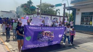 Valeria Córdova La madre de Madelin tiene apenas 18 años. Es la segunda vez que acude a la marcha del ocho de marzo y resalta entre la multitud por cargar
