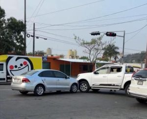 Darinel González Un pequeño choque automovilístico se registró la mañana de este jueves en la carretera Tapachula–Viva México, a la altura de los semáforos ubicados en la entrada a la