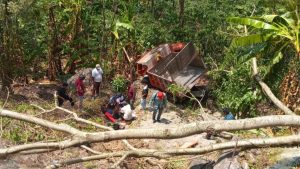 Darinel González Un camión tipo volteo de color rojo cayó a un barranco en la zona alta de Pavencul, en el municipio de Tapachula, dejando como saldo a su conductor