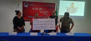 • Jorge Zúñiga Rodríguez entregó el cheque simbólico por 86 mil 588 pesos recaudados en el evento denominado «Amor en Rojo» Jorge Pérez Pólito La Cámara Nacional de Comercio, Servicios