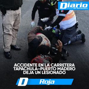 Darinel González Un accidente vehicular registrado sobre la carretera Tapachula–Puerto Madero, a la altura de la entrada a Playa Linda, dejó como saldo una persona lesionada y daños materiales por